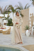 set abaya + kimono, coupe droite, tissus organza léger, vendu avec le voile