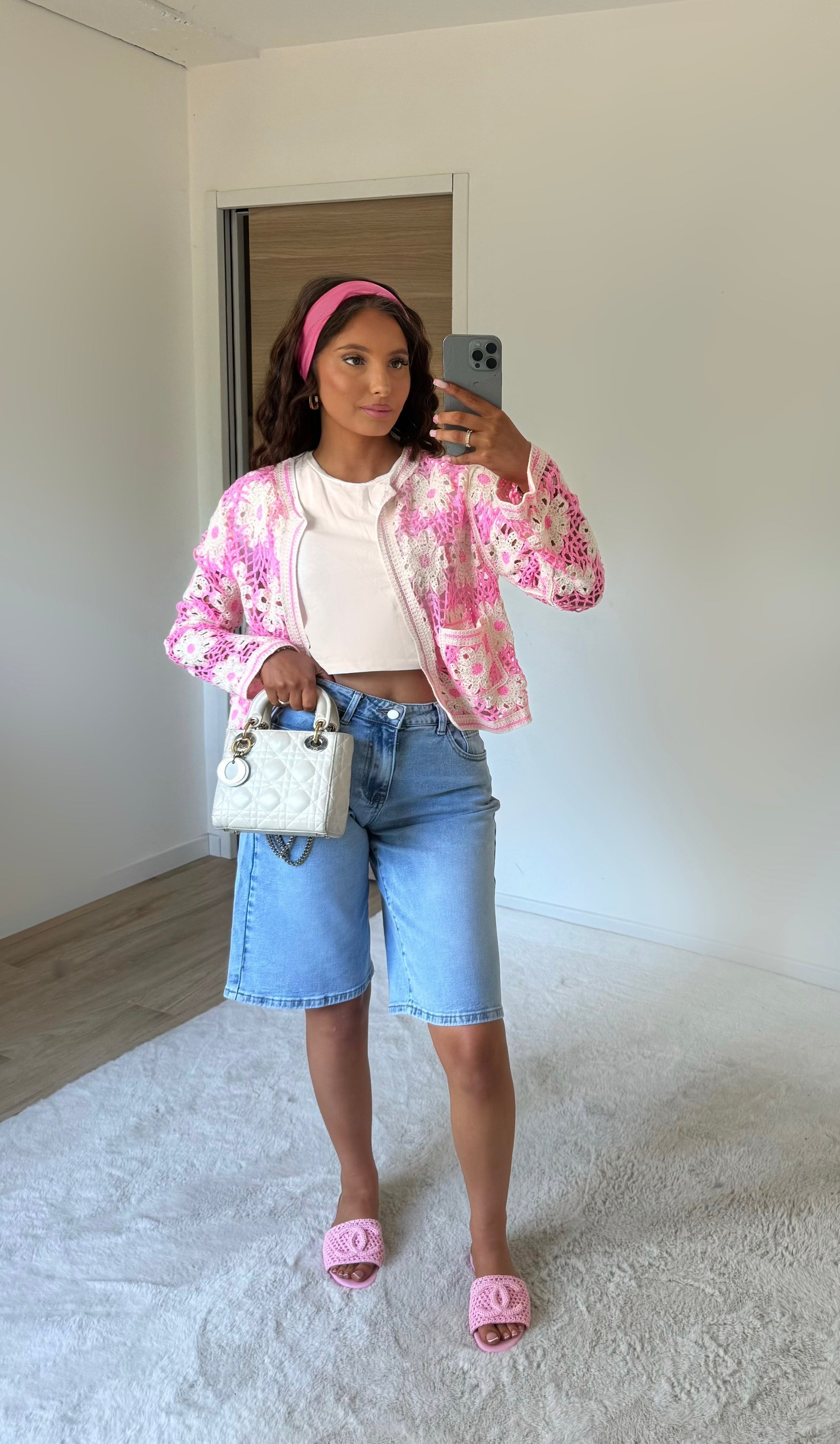Gilet crochet rose